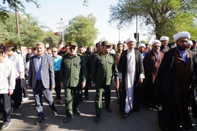 در این مراسم، شرکتکنندگان با سردادن شعارهای «مرگ بر آمریکا» و «مرگ بر اسرائیل»، بار دیگر بر پایبندی خود به آرمانهای انقلاب اسلامی و تبعیت از رهنمودهای رهبر معظم انقلاب(مدظله العالی) تأکید کردند.