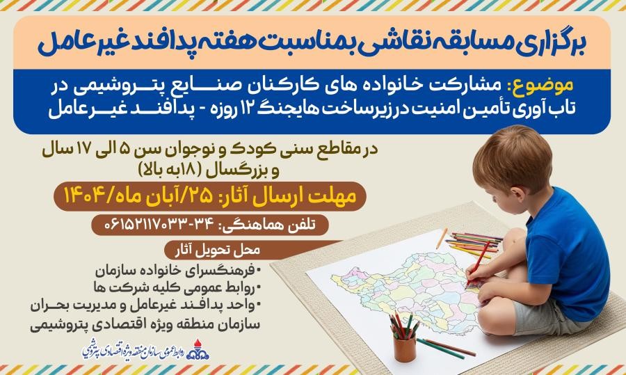 اینجانب ضمن گرامیداشت هفته پدافند غیرعامل و قدردانی از تلاشهای همکاران خدوم در صنعت پتروشیمی، امیدوارم با اتکال به خداوند متعال و با همافزایی همه بخشها، شاهد افزایش تابآوری زیرساختی، پایداری اجتماعی و استمرار تولید ایمن در مسیر توسعه پایدار کشور باشیم.